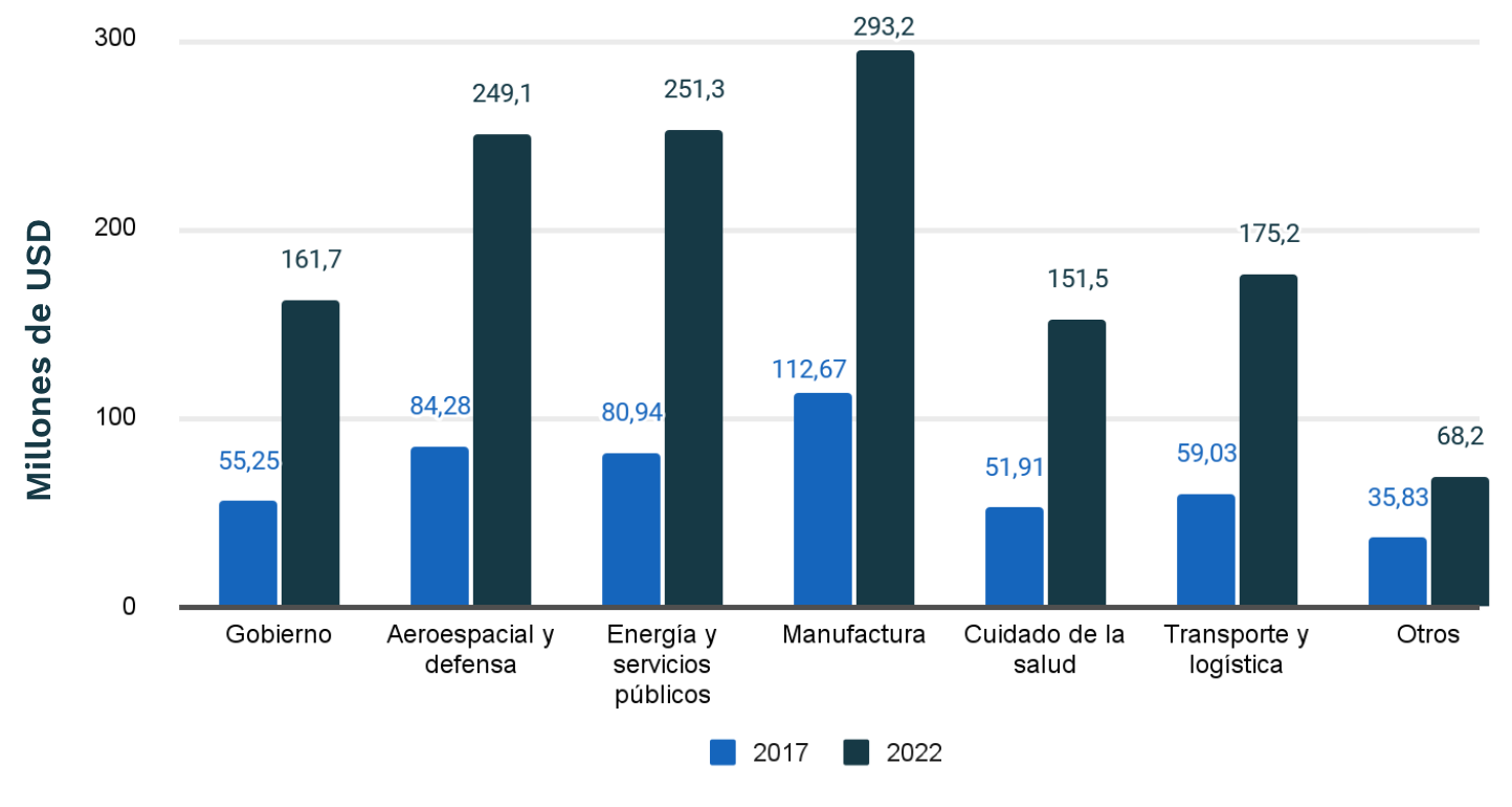 Entre el año 2017 a 2022, se registró un aumento significativo en la inversión en modelos de mantenimiento predictivo, destacando el área manufacturera con $293.2 millones de USD